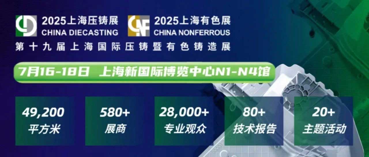 2025年7月16日至18日,,,,,,,,由中国机械工程学会铸造分会主理的第十九届上海国际压铸暨有色铸造展览会在上海新国际博览中心盛大举行 。。。。。。作为亚洲以致全球压铸及有色铸造领域极具影响力的行业盛会,,,,,,,,本次展会汇聚了来自海内外压铸工业链上下游的领军企业和立异实力,,,,,,,,配合展示前沿手艺、先进装备和辽阔市场远景 。。。。。。